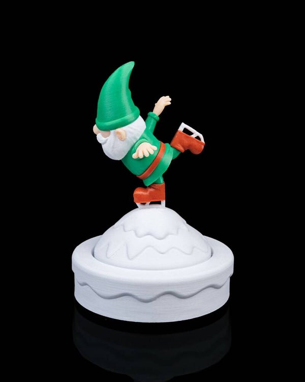 Dieser Winterschlittschuhläufer gleitet anmutig über das Eis und bringt Wirbel, Drehungen und jede Menge Weihnachtsstimmung auf die Eisbahn.