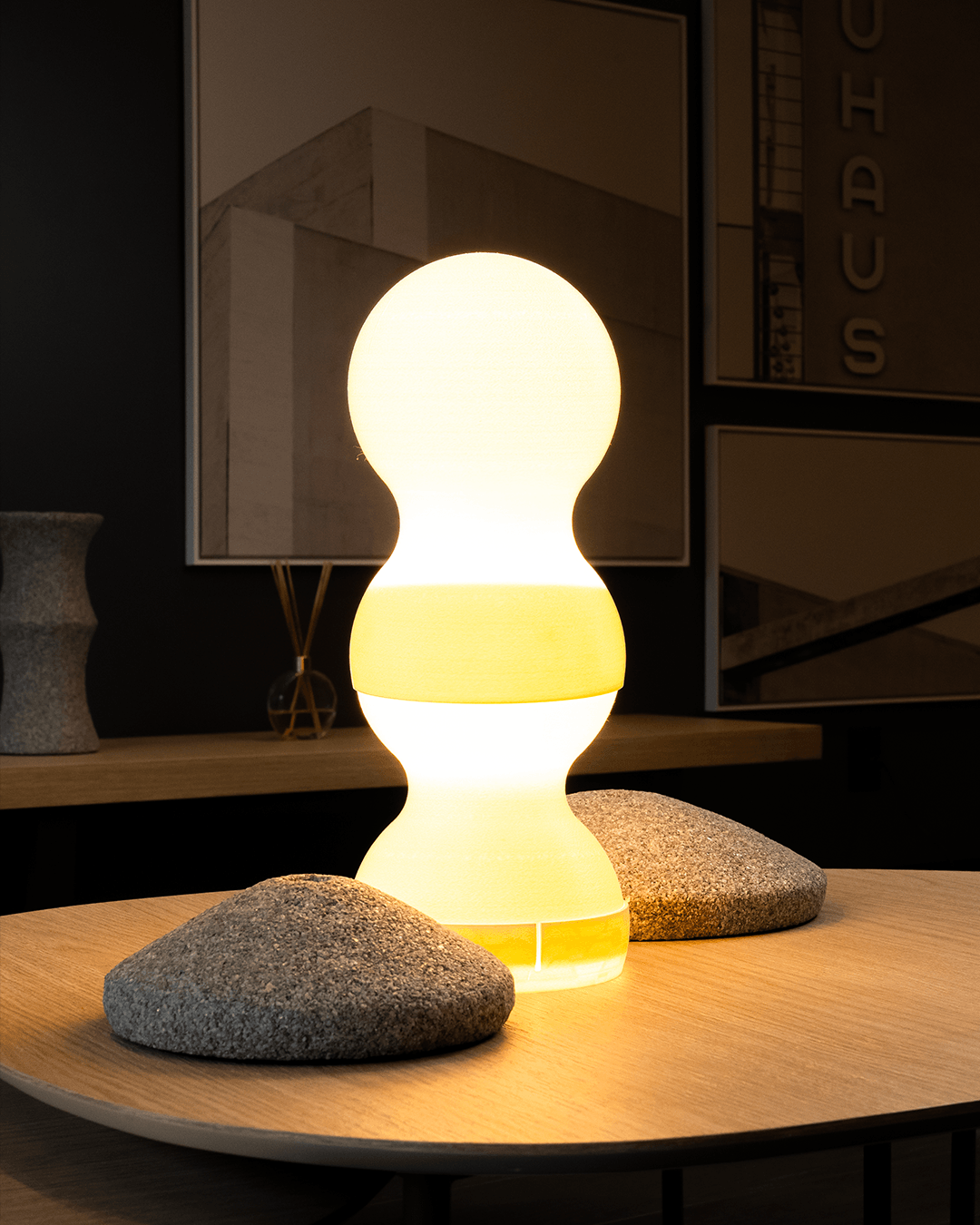 Aura hüllt ihre Umgebung in ein warmes, atmosphärisches Licht. Perfekt für Sideboards und Tischplatten, schafft es eine sanfte Atmosphäre, die den Raum weicher macht und bereichert.